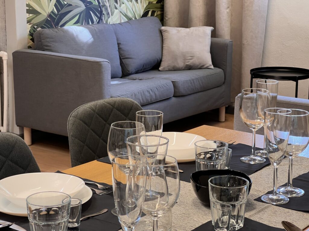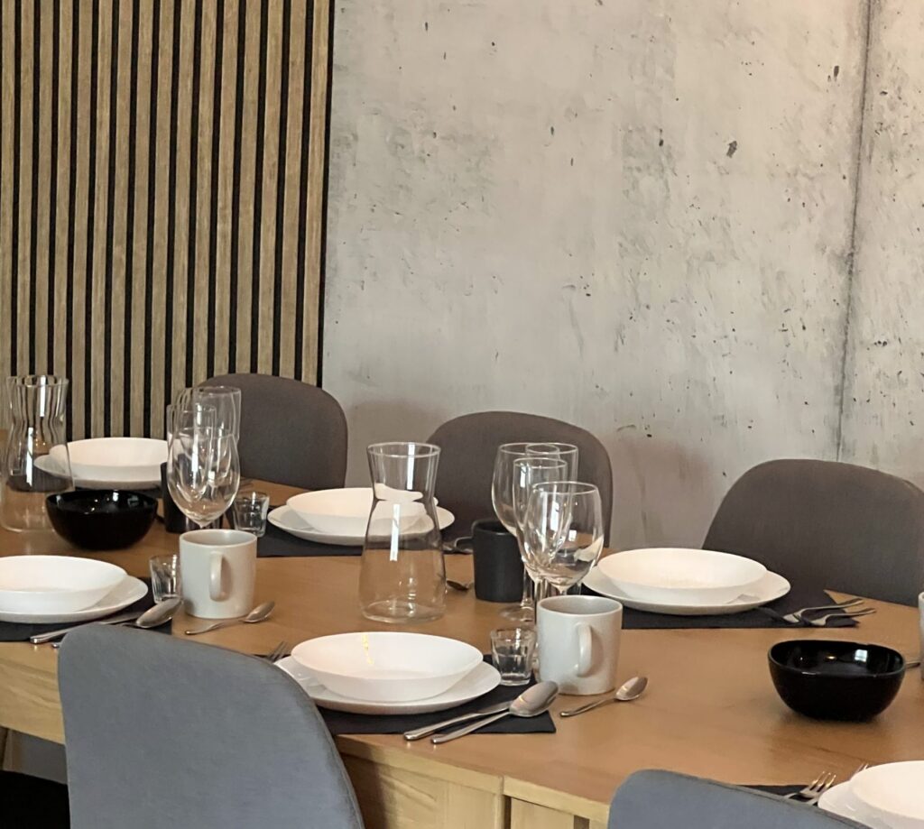 - Strefa jadalniana - stoły, krzesła, talerze sztućce, miseczki, szklanki, kieliszki i kubki.